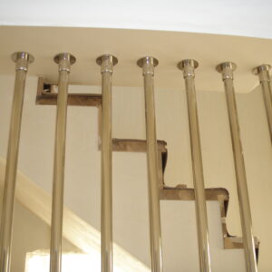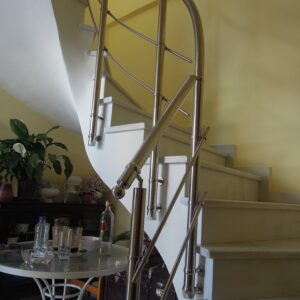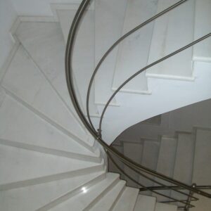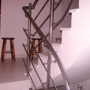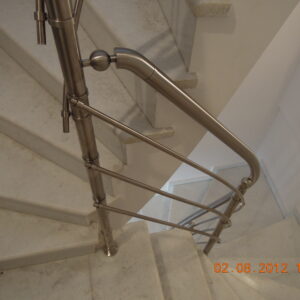 Τα κάγκελα σκάλας αποτελούν ένα μεγάλο πεδίο μελέτης και εφαρμογών της Megan. Τόσο τα κάγκελα εσωτερικής σκάλας όσο και τα κάγκελα εξωτερικής σκάλας έχουν τους δικούς τους πολυπληθείς συνδέσμους με τα παρελκόμενα εξαρτήματά τους. Η σχέση της Megan με την σκάλα είναι τόσο παλιά, όσο και ύπαρξή της. Τα αρχεία μας περιέχουν εκατοντάδες σχέδια σκάλας και μελέτες σκαλών και καλύπτουν τις πιο σπάνιες περιπτώσεις καγκέλων σκάλας. Σκάλες με ξύλινη επένδυση, σκάλες με μεταλλική επένδυση, σκάλες από μάρμαρο ή οποιαδήποτε άλλη επένδυση σκάλας, θα βρουν στην Megan τα κατάλληλα εξαρτήματα για τα κάγκελά τους.